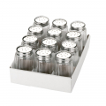 Salero pequeño de vidrio y acero inoxidable. medida: 37,5 ml