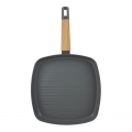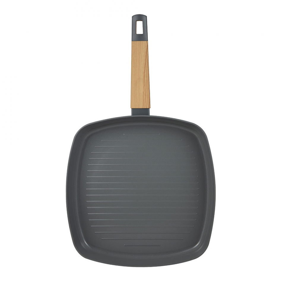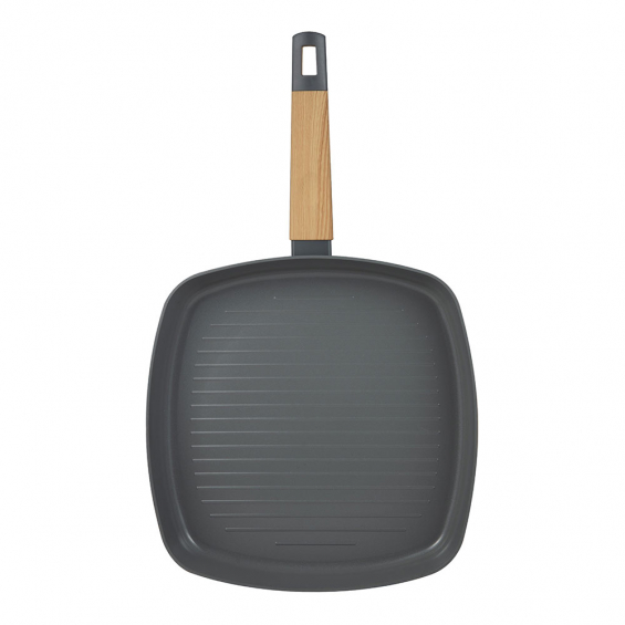 Sartén grill aluminio prensado. interior ppg fusion en color gris. exterior en color gris. ø28 cm. punto inducción con diseño. mango de madera resistente al calor con tacto suave