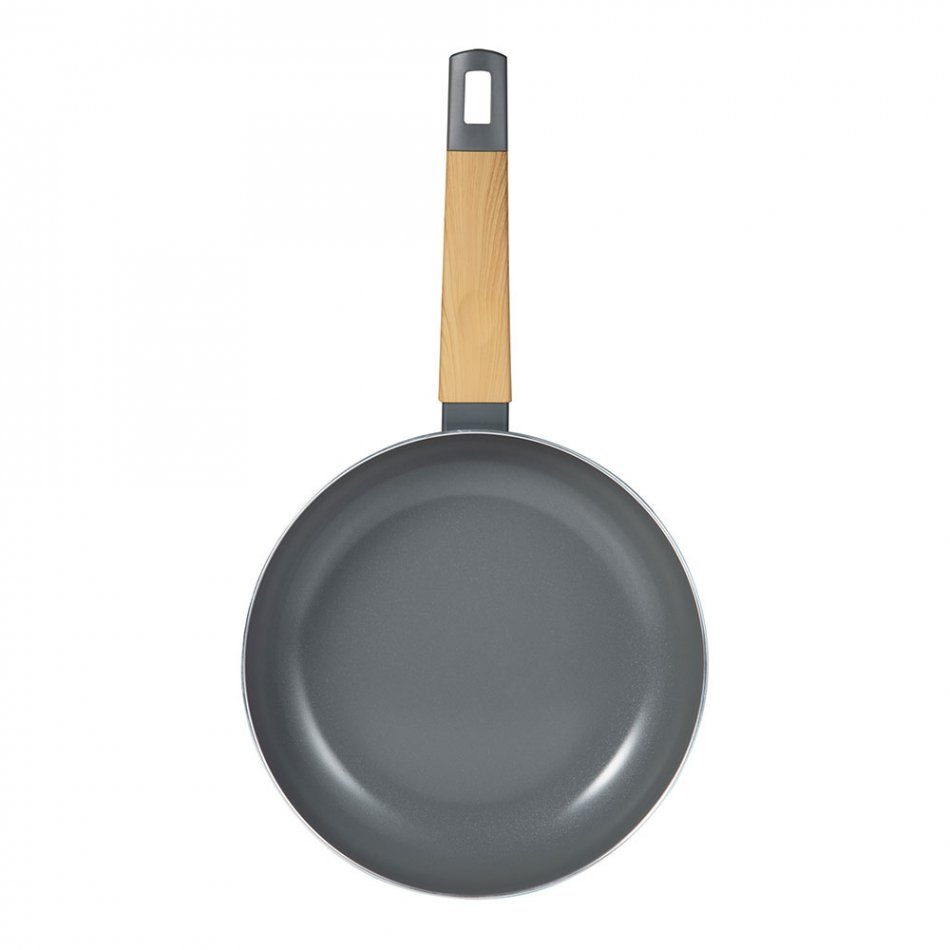Sartén aluminio prensado. interior ppg fusion en color gris. exterior en color gris. ø20 x 5,6 cm. punto inducción con diseño. mango de madera resistente al calor con tacto suave