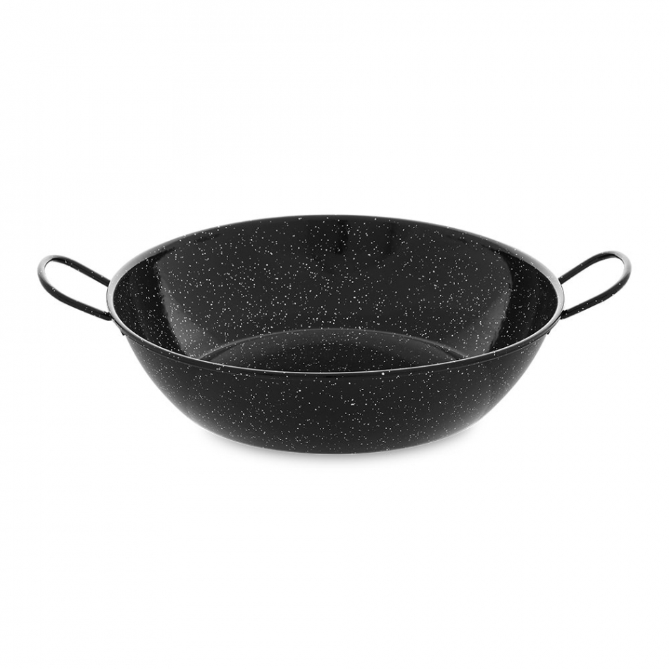Sarten honda esmaltada con asas ø38cm. producto fabricado en acero laminado en frío y recubierto con una capa de esmalte antiácido. limpieza y mantenimiento sencillo. apta para horno. de 10 a 14 comensales. vaello