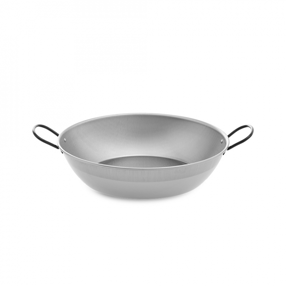 Sarten honda pulida con asas ø30cm. producto fabricado en acero laminado en frío. indicado para fuego en llama. ideal para guisar arroces y calderetas. de 4 a 6 comensales. vaello
