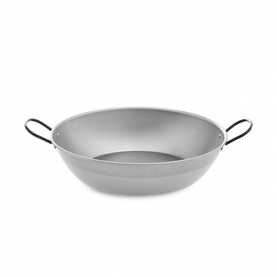 Sarten honda pulida con asas ø34cm. producto fabricado en acero laminado en frío. indicado para fuego en llama. ideal para guisar arroces y calderetas. de 6 a 10 comensales. vaello