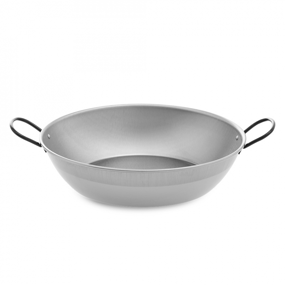 Sarten honda pulida con asas ø50cm. producto fabricado en acero laminado en frío. indicado para fuego en llama. ideal para guisar arroces y calderetas. de 25 a 30 comensales. vaello