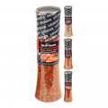 Sazonador para barbacoa. sabores variados. piri piri bbq: sal marina 64%, ajo, chile, pimienta negra, cebolla, semillas mostaza amarilla, y cilantro. sweet sticky: 68% sal marina, semillas de mostaza amarilla, semillas de cilantro, ajo, jengibre, chile, semillas de comino, canela, aroma. texas bbq: 65% sal marina, pimentón, semillas mostaza, ajo, cilantro, granos de pimienta negra, chile, cebolla, semillas de comino, tomillo. puede contener trazas de gluten, apio, semillas de sésamo, soja.