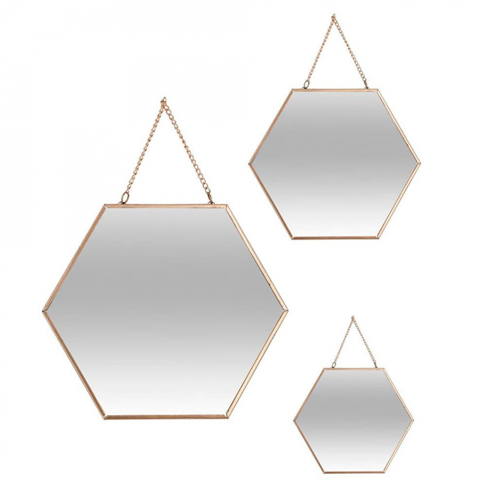 Set 3 espejos oro hexagonales 19,8x17,5cm/25x22,5cm/29,5x26cm