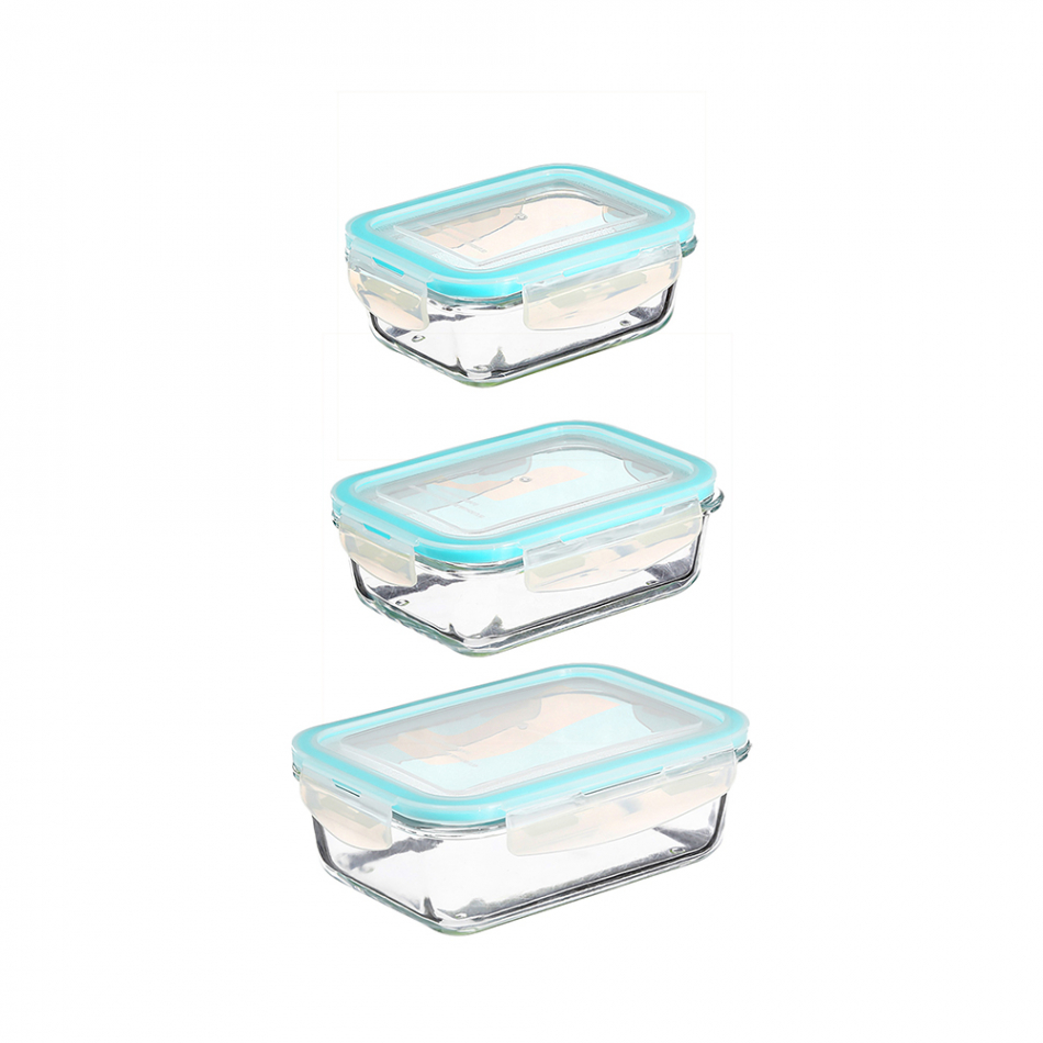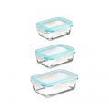 Conjunto 3 fiambreras de cristal tamaños varios 330ml - 13x10x5cm, 800ml - 18,5x12,5x6cm, 1.730ml - 23x16,5x8,5cm
