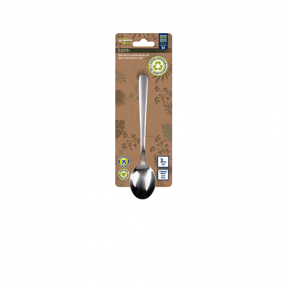 Set 3 unid. cucharilla acero inox. reciclado brillo earth sg7778 san ignacio. fácil limpieza apto para lavavajillas cucharillas de acero inoxidable de altísima calidad lo cuales los hacen ligeros, resistentes y duraderos. fabricación 100% ecológica de colores verdes y marrones con acabados brillantes. mango sorf touch de tacto frío complemento perfecto para tu cocina