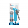 Set pistola de riego hydron ideal 3/4" que contiene: aspersor manual hydron, conector rápido de manguera - stop ideal, conector rápido de manguera - ideal y conector con rosca hembra ideal g3/4"