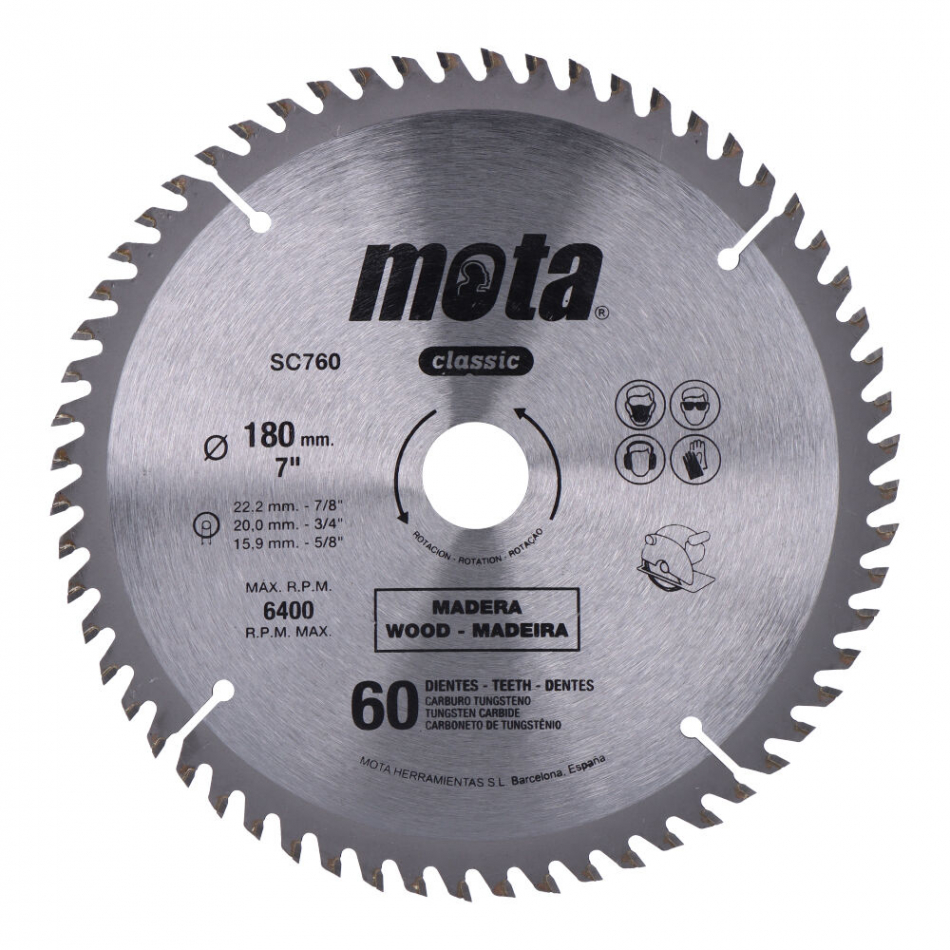 Sierra circular widia ø180mm 60 dientes clp18 sc760 mota