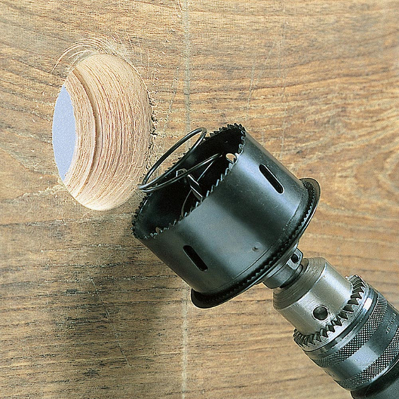Sierra de corona con expulsor y avellanador de borde, ø68mm 2158000 wolfcraft sierra corona ø68mm para cajas en madera y yeso. avellanador, expulsor, vástago triangular. compatible con taladros y atornilladores. incluye broca centradora ø6mm.