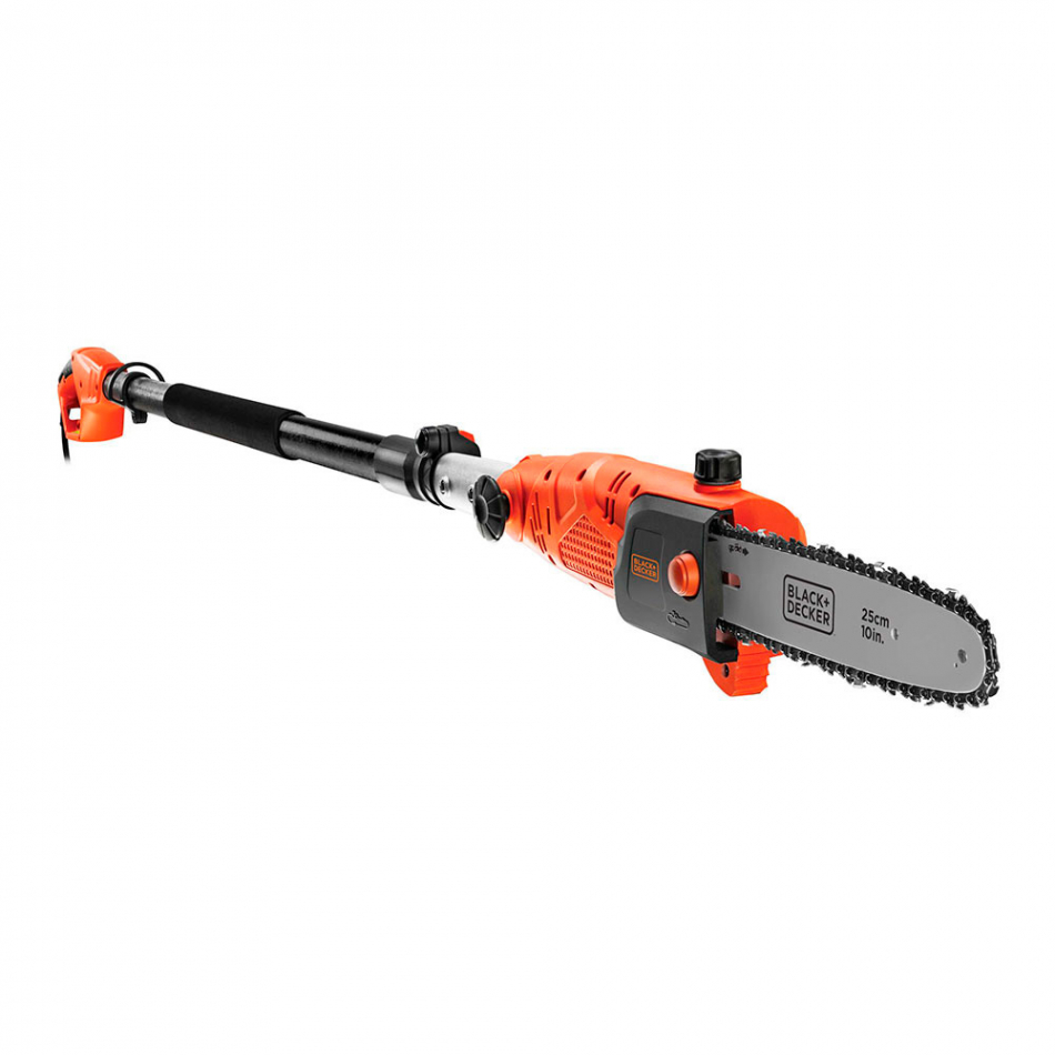 Sierra de pertiga 800w ps7525-qs black+decker. velocidad de cadena de 11m/s, para un corte rápido y efectivo. cadena de bajo retroceso para un corte suave y rápido en madera húmeda y seca. sistema de freno de cadena, cabezal giratorio. mayor alcance hasta 2,7m. 220-240v. vibracion 2,5m/s². 78db. longitud de espada 25cm.