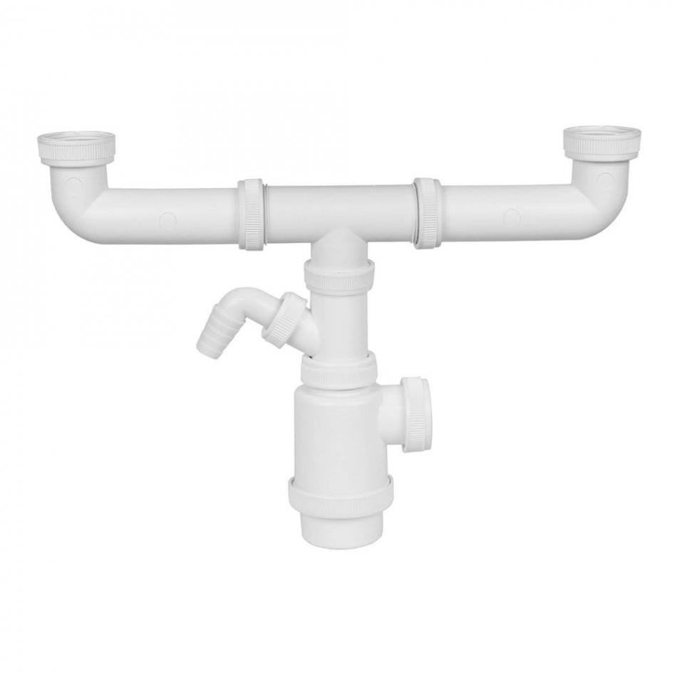 Sifon doble de botella extensible con toma de lavavajillas, sin valvula. plastico pvc