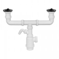 Sifon doble de botella extensible v70 con toma de lavavajillas. con tapones, plastico pvc