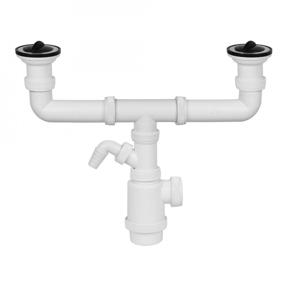 Sifon doble de botella extensible v70 con toma de lavavajillas + tapones