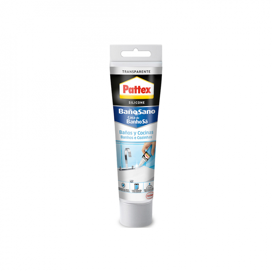 Silicona transparente, 50 ml. sanitaria de primera calidad protegida contra el moho para la realizacion de acabados y sellados de juntas en cuartos de baño secado aprox 24 horas para interior y exterior