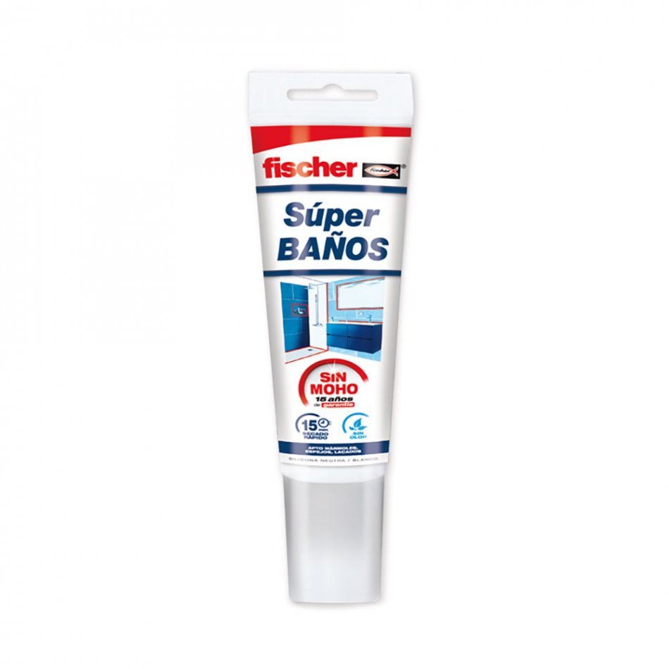 Silicona super baños transparente 100ml 563517 fischer. apta para marmoles y espejos, neutra.