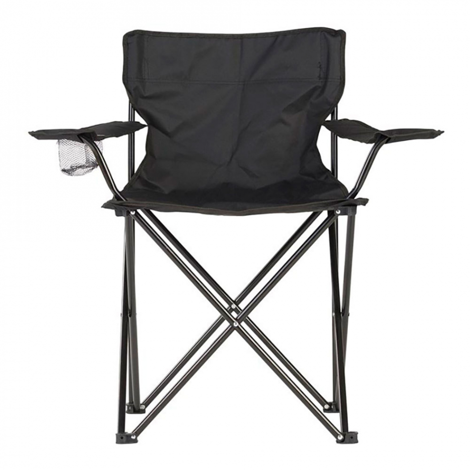 Silla plegable de camping 80x83,5x51cm (ancho/fondo/alto) color negro. incluye bolsa de transporte. con porta bebida. hasta 120kg. material: polyester
