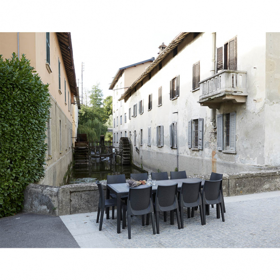Butaca apilable imitacion rattan. color: antracita 61x54x82cm peso: 3,5kg modelo: regina. fabricado con polipropileno, progarden, no apto para uso profesional, sólo para uso doméstico.