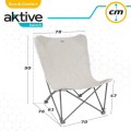 Ve equipado a tus escapadas por la montaña o la playa con el sillón plegable camping XL de la línea Aktive Camping. El sillón cuenta con un diseño elegante en color beige, su estructura está fabricada de acero y el material de su asiento es textileno (fácil de limpiar con un trapo húmedo y resistente). Tiene unas medidas abierto de 78 cm de ancho, 76 cm de largo y 90 cm de alto y la altura del asiento es de 47 cm. Se pliega fácil mediante estilo acordeón, cuenta con un asa tipo bandolera para transportarla, es ligera y apenas ocupa espacio. Tiene capacidad para una persona y soporta hasta 115 kg. Además, cuenta con topes de base ancha en las patas, lo que ofrece estabilidad en terrenos blandos, y su asiento es extraíble para poder limpiarse cómodamente o guardarlo hasta el próximo uso. -Silla camping plegable XL color beige para disfrutar de tus escapadas al aire libre Aktive Camping -Medidas: silla de 78x76x92 cm, medidas plegada de 14x112 cm, altura asiento 47 cm -Materiales: fabricada con textileno y estructura de acero -Alta resistencia y estabilidad: su estructura soporta un peso máximo de 115 kg y cuenta con topes antivuelco en las patas -Ligera y compacta: se pliega fácil mediante estilo acordeón, tiene asa incorporada tipo bandolera y dos cintas con velcro para sujetar la silla cerrada
