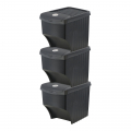 Sistema de 3 cubos apilables para reciclaje 39,2 x 29,3 x 45,6 cm, 22 litros cada uno en color gris piedra