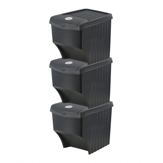Sistema de 3 cubos apilables para reciclaje 39,2 x 29,3 x 45,6 cm, 3 x 22 l