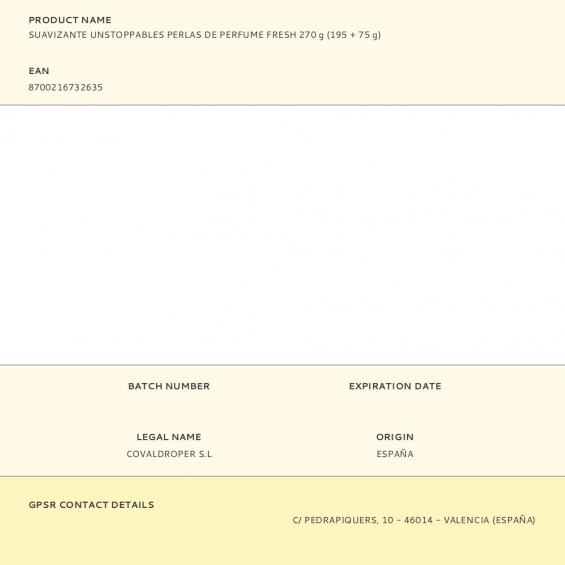 Suavizante unstoppables perlas de perfume fresh 270 g (195 + 75 g)
