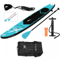 Tabla de paddle surf hinchable, tiene tres quillas, dos pequeñas fijas y una más grande. dispone de un cordón en la parte delantera con longitud de 2,3 m. tiene una lámina antideslizante. contiene una mochila, remo telescópico de aluminio (mín. 1,70 m / máx. 2,1 m), bomba de hinchado y kit de reparación. 10 x 71 x 285 cm