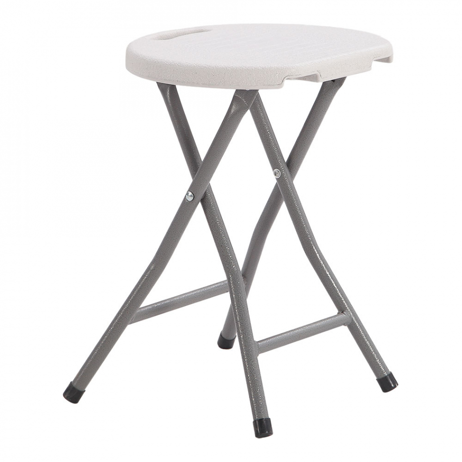 Taburete plegable, carga máxima 150 kg. material plástico de alta densidad, grosor tubo de acero ø19 mm, color blanco. medida 33 x 30 x 45 cm