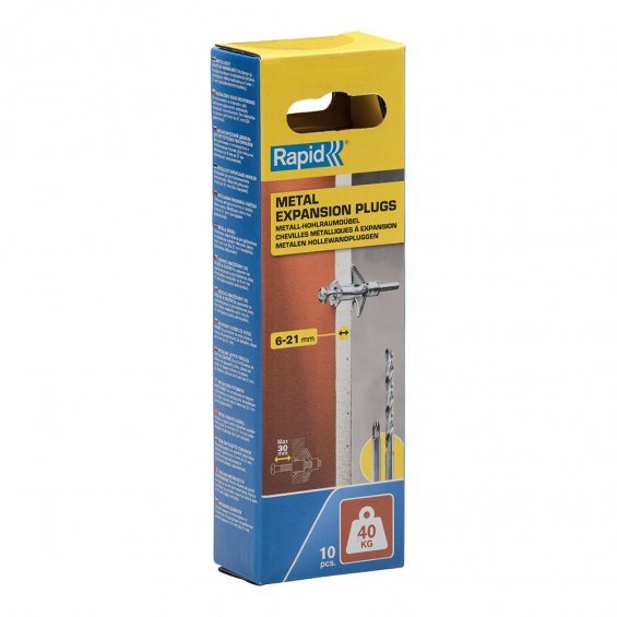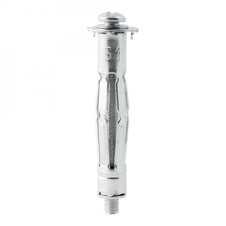 Taco de expansión metálico ø11x52 tornillo m5x63 resistencia 40 kg. especial para pladur, paredes de yeso y paredes huecas. para grosor de pared: 6-21mm