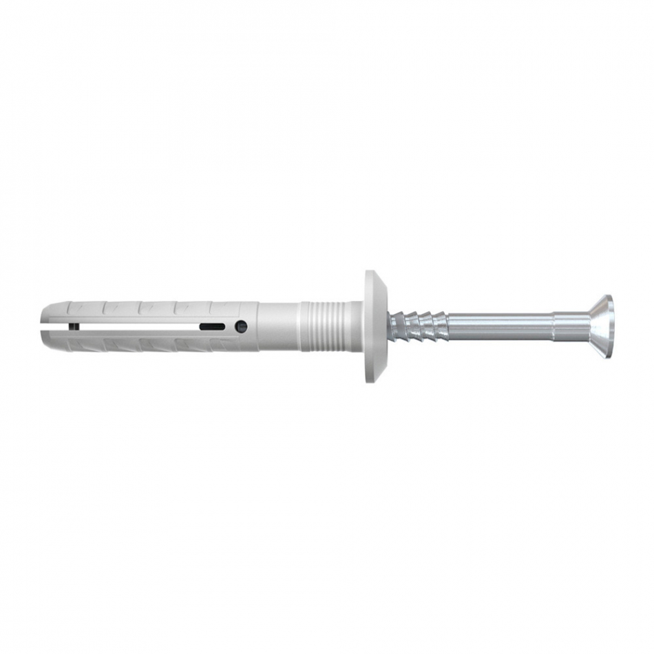 Tacos clavo ø6 x 40 mm / 7 p + tornillos cabeza avellanada ø3,7 x 48 mm, pz2. se compone de un taco de nylon de alta calidad y un tornillo clavo galvanizado. para fijación de regletas eléctricas y construcciones de madera en todos los materiales de construcción interiores. caja 50 uds