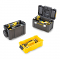 Taller móvil 3 en 1 essential con cierres metálicos. asa plegable para mayor comodidad. organizadores en la tapa para pequeñas piezas. cierres metálicos geométricos con bloqueo para mayor seguridad. ruedas 18cm para una mejor manejo- 3 en 1: caja de herramientas 45cm, módulo central para herramientas manuales y compartimento de gran capacidad. caja de herramientas superior de 45cm/18 con organizadores en la tapa para pequeñas piezas y cierres metálicos geométricos con bloqueo para mayor seguridad. módulo central extraíble para herramientas manualescompartimento de gran capacidad. ruedas 18cm para una mejor maniobrabilidad. asa plegable para mayor comodidad. stanley