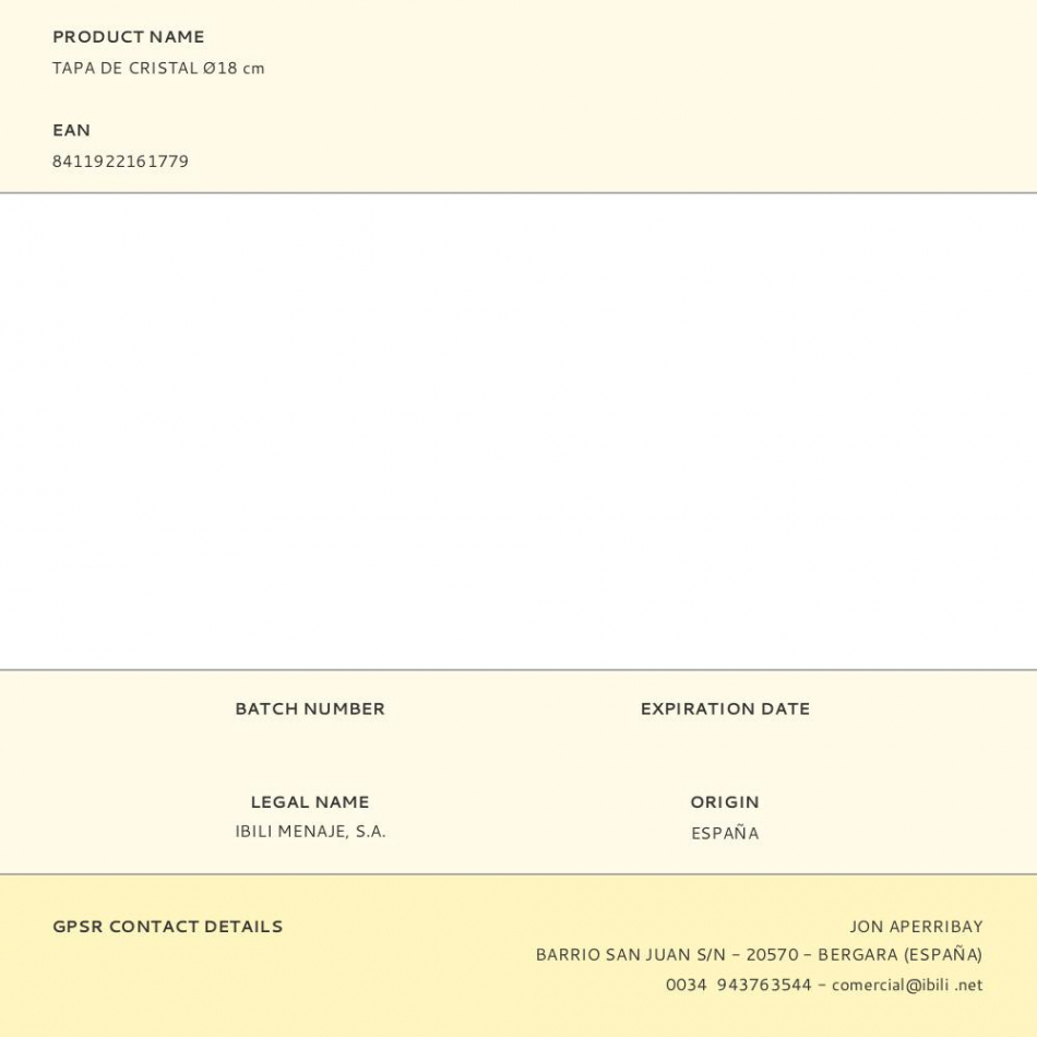 Fabricante:   Ibili    P/N:      EAN:  8411922161779    Código:  365652