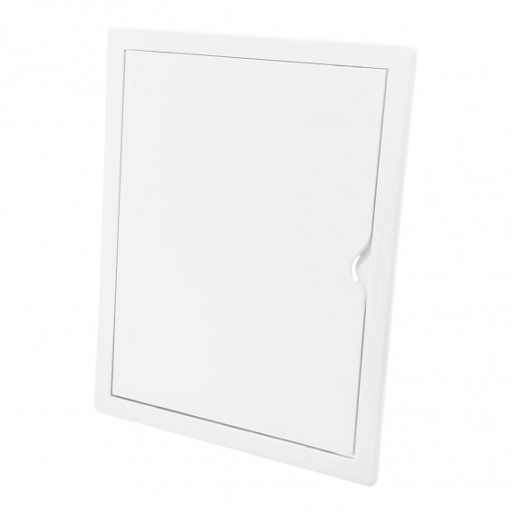 Tapa de registro rectangular empotrable de plástico enclavamiento 20x25cm, medida 21,5x26.5, apto para pladur y con mecanismo de apertura (push-pull), blanca
