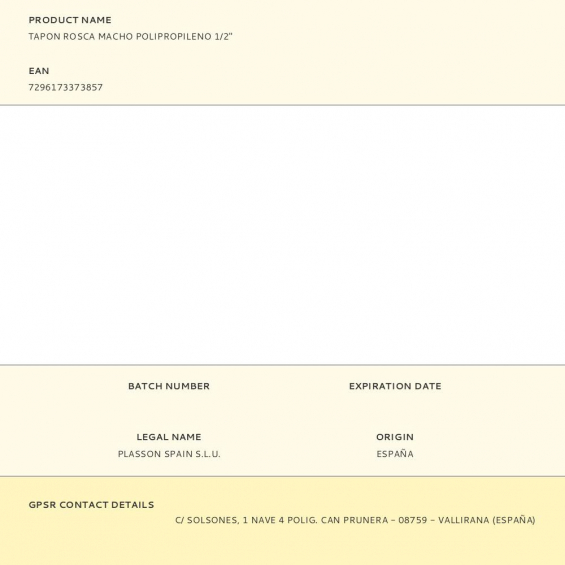 Fabricante:   PLASSON    P/N:      EAN:  7296173373857    Código:  380342