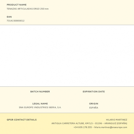 Tenazas articuladasde apertura múltiple con mangos bi-componente y acabado fosfatado, 250mm