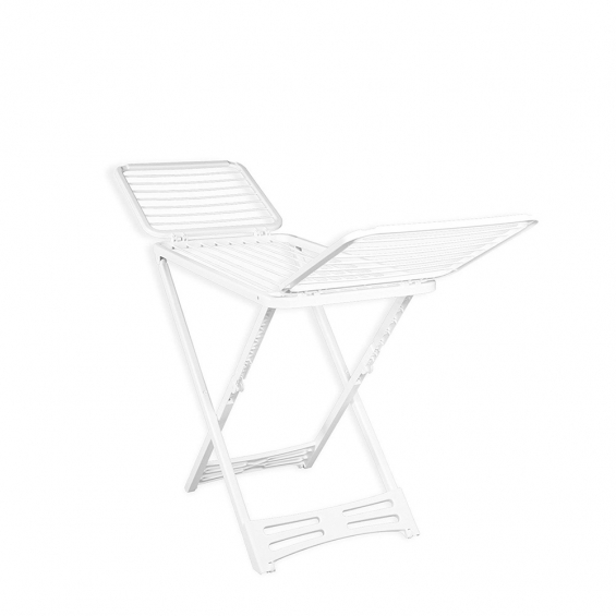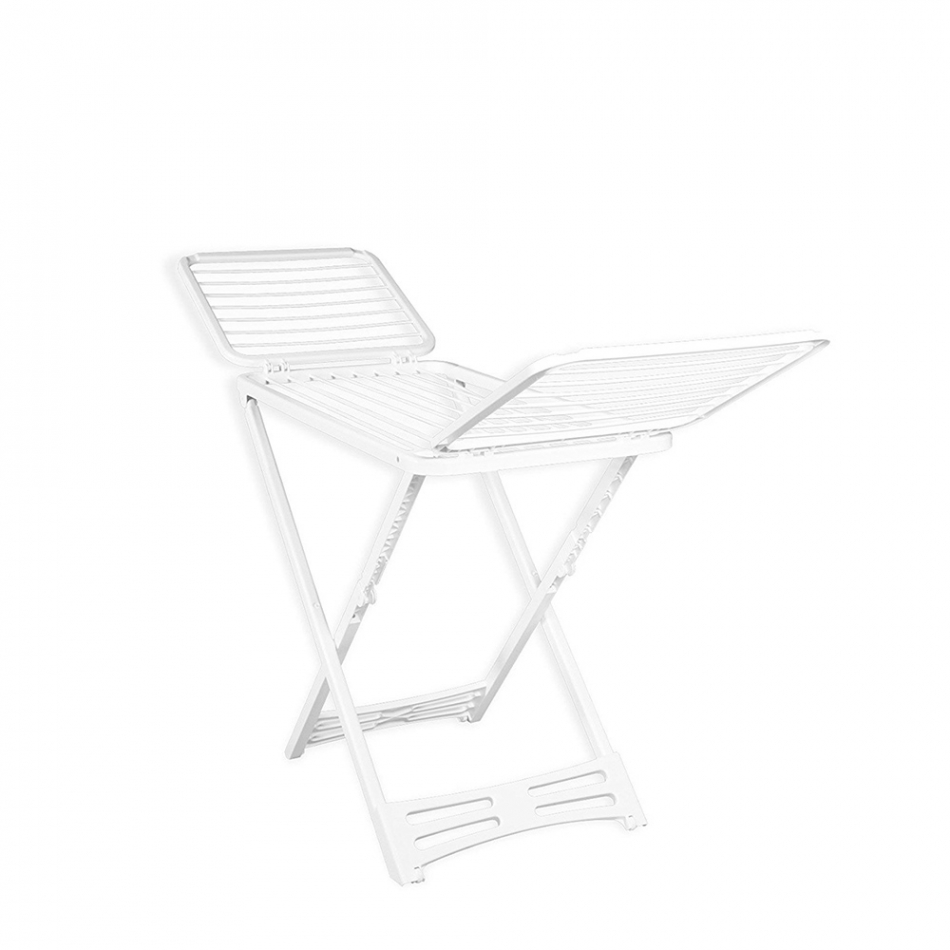 Tendedero blanco 100% de resina, ideal para el uso en exteriores. incorpora ruedas, bloqueo de alas y un botón de seguridad anticierre. resistente y estable. espacio de tendido 20 m. dimensiones 182 x 55 x 110 cm