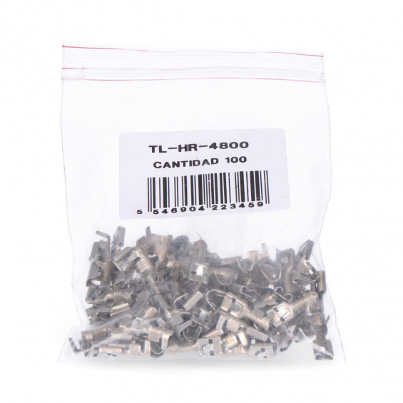 Terminal faston con sujeción 4,8 mm hembra, bolsa 100 unid.