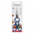 Tijera forjada inox forjada en caliente, ligera y comoda. medida 8" . dedales esmaltados en azul sin bpa. presentada en display colgador. varios usos de la tijera: corte , casca nueces, abre botes y descapsulador. filo dentado para fijar alimentos al ser cortados , así como para separar articulaciones y huesos finos. se puede lavar a mano o en el lavavajillas