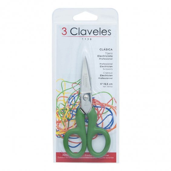 Tijera electricista profesional de 5". forjada en caliente en acero carbono de alta calidad.dispone de mangos aislantes en pvc. gran durabilidad del filo . por su acabado niquelado tiene una alta resistencia a la corrosión . también se puede usar como pela cables.presentada en display/colgador