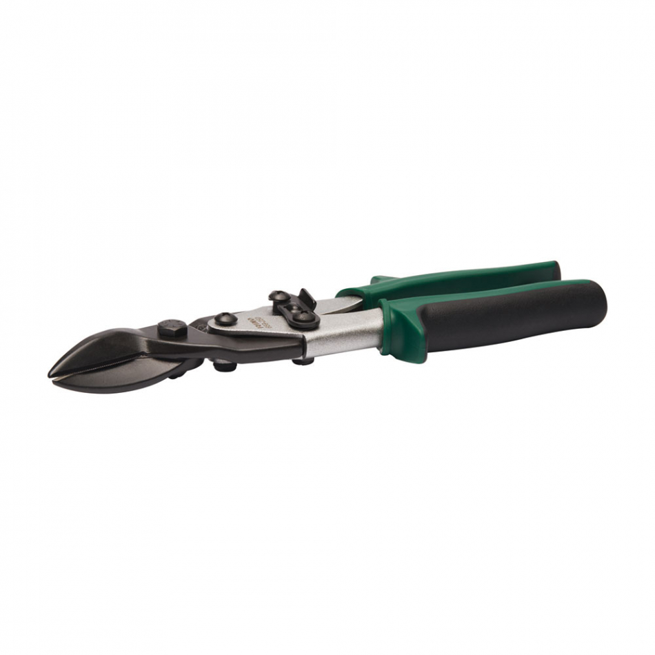 Tijera para chapa articulada cortante derecha, 250mm 659-250-1. acero de cromo molibdeno forjado para mayor resistencia. el sistema de palanca incrementa su eficiencia. mangos con una zona de agarre suave y con muelle de retorno para aumentar la comodidad durante el trabajo. mangos verdes: corte a derechas. capacidad de corte: 1 acero inoxidable, 2 acero laminado en frío. 658421-1: juego de piezas de repuesto con tuerca, muelle y husillo.