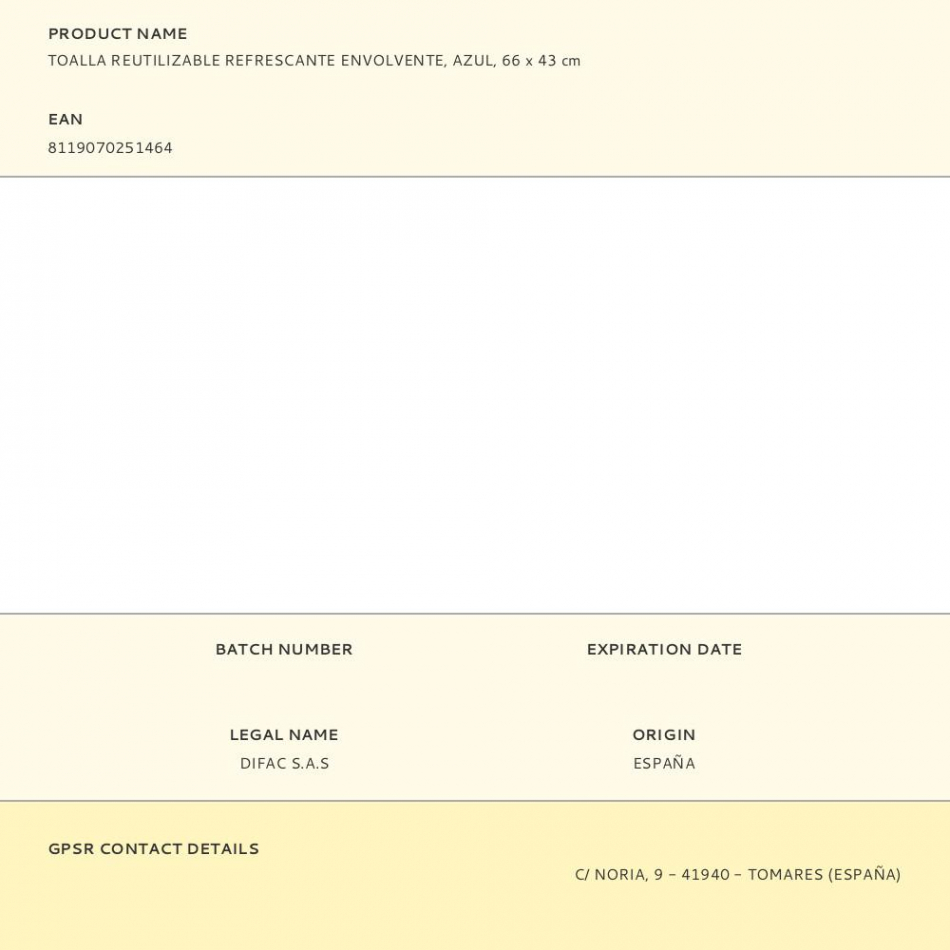 Toalla reutilizable refrescante envolvente, azul, 66 x 43 cm