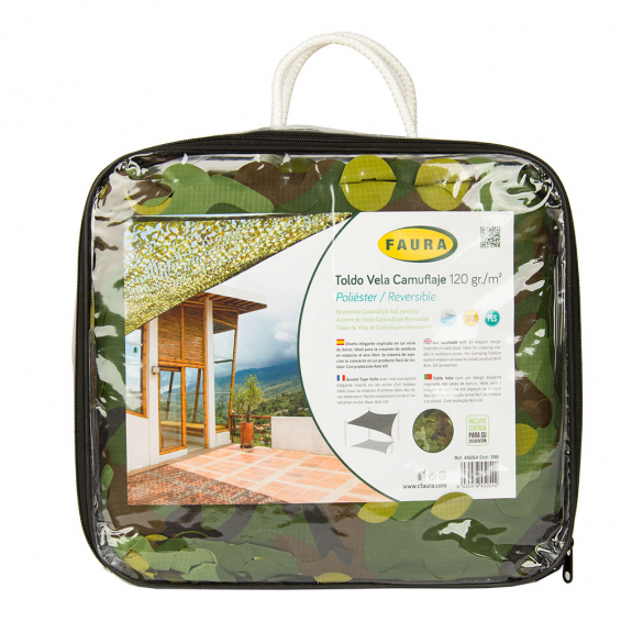 Toldo vela camuflaje reversible rectangular militar, material poliéster, contiene anillas de acero inoxidable y cuerda. tratamiento anti-uv. ocultación del tejido 100%. dimensiones: cuerda 22 mm, anillas 6 x 50 mm, total 3 x 4 m