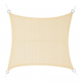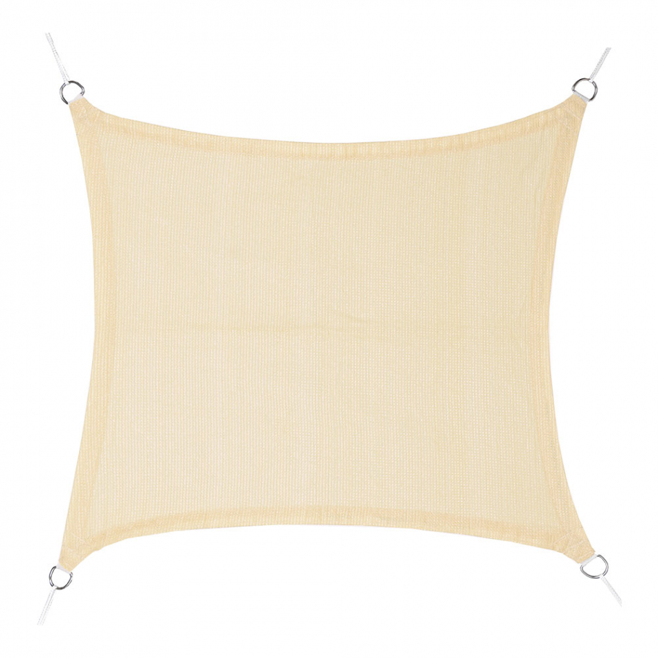 Toldo vela cuadrado beige, material polietileno, contiene anillas de acero inoxidable y cuerda. tratamiento anti-uv. ocultación del tejido 100%. dimensiones: cuerda 25 mm, anillas 6 x 50 mm, total 3,6 x 3,6 m