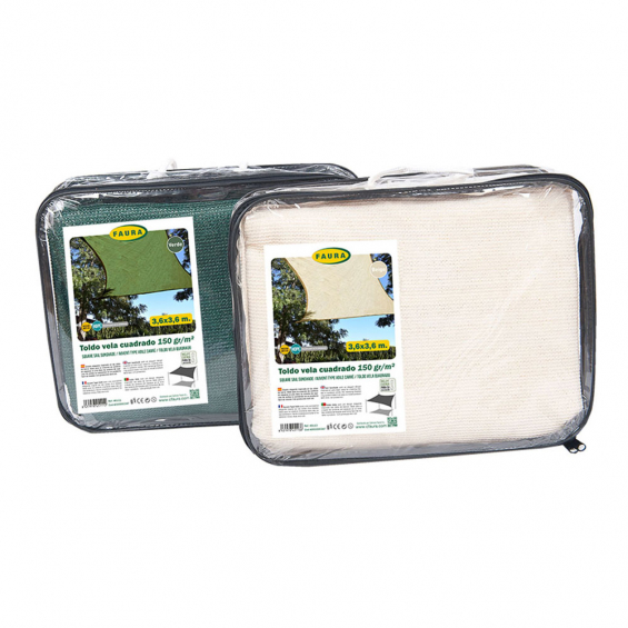 Toldo vela rectangular beige, material polietileno, contiene anillas de acero inoxidable y cuerda. tratamiento anti-uv. ocultación del tejido 100%. dimensiones: cuerda 25 mm, anillas 6 x 50 mm, total 4 x 6 m