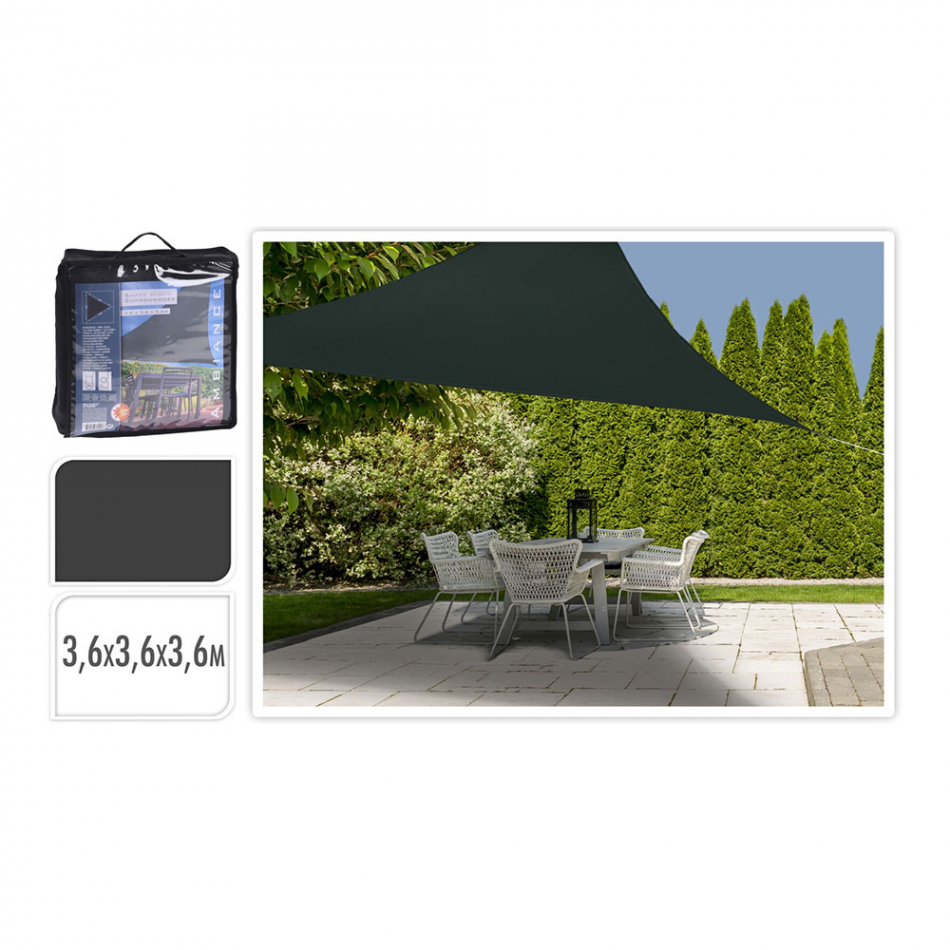 Toldo de tela triangular color: gris oscuro 360x360x360cm (ancho/fondo) fabricado con poliester peso: 0,96kg ambiance