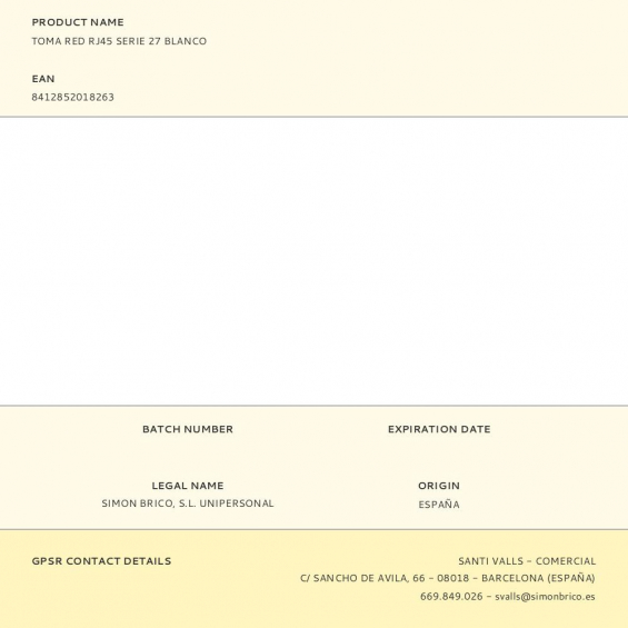 Fabricante:   Simon    P/N:      EAN:  8412852018263    Código:  376359