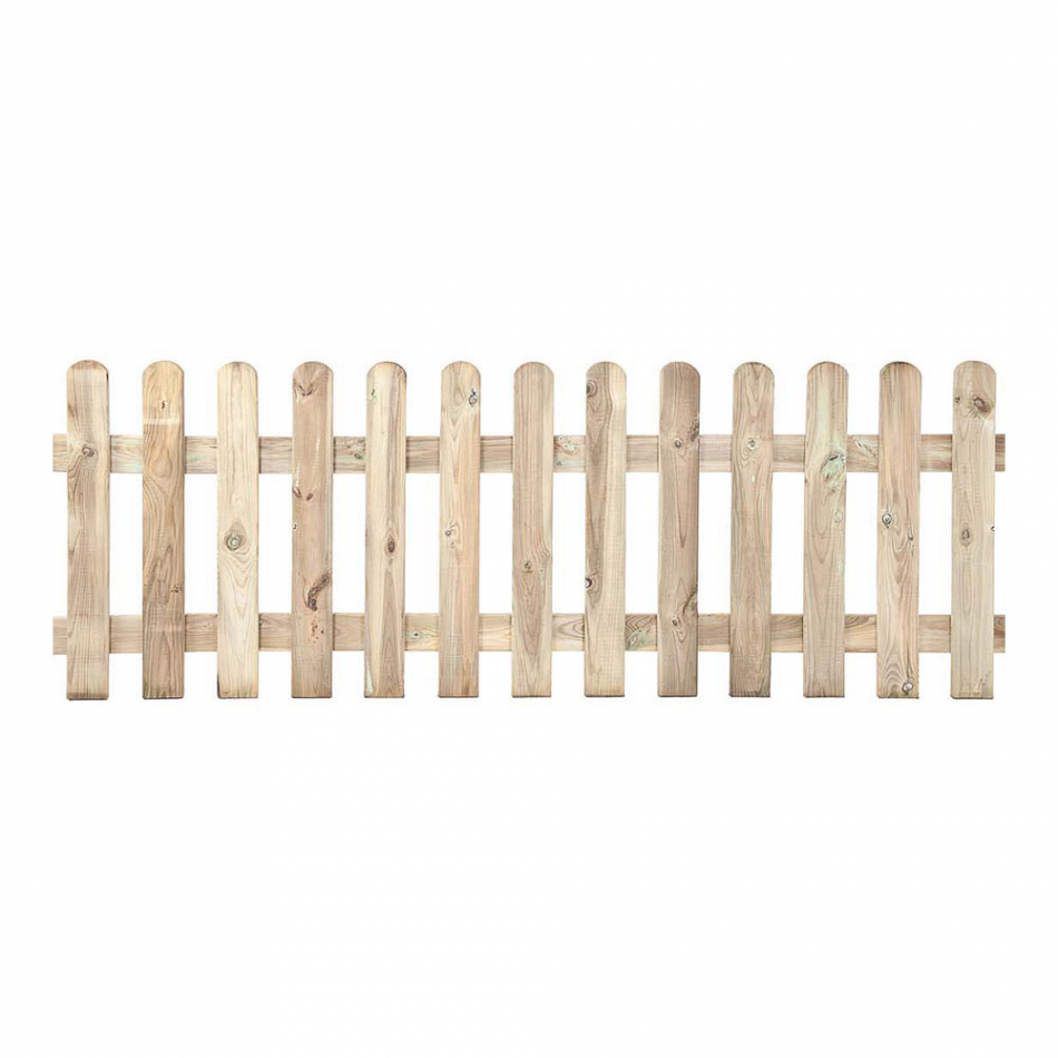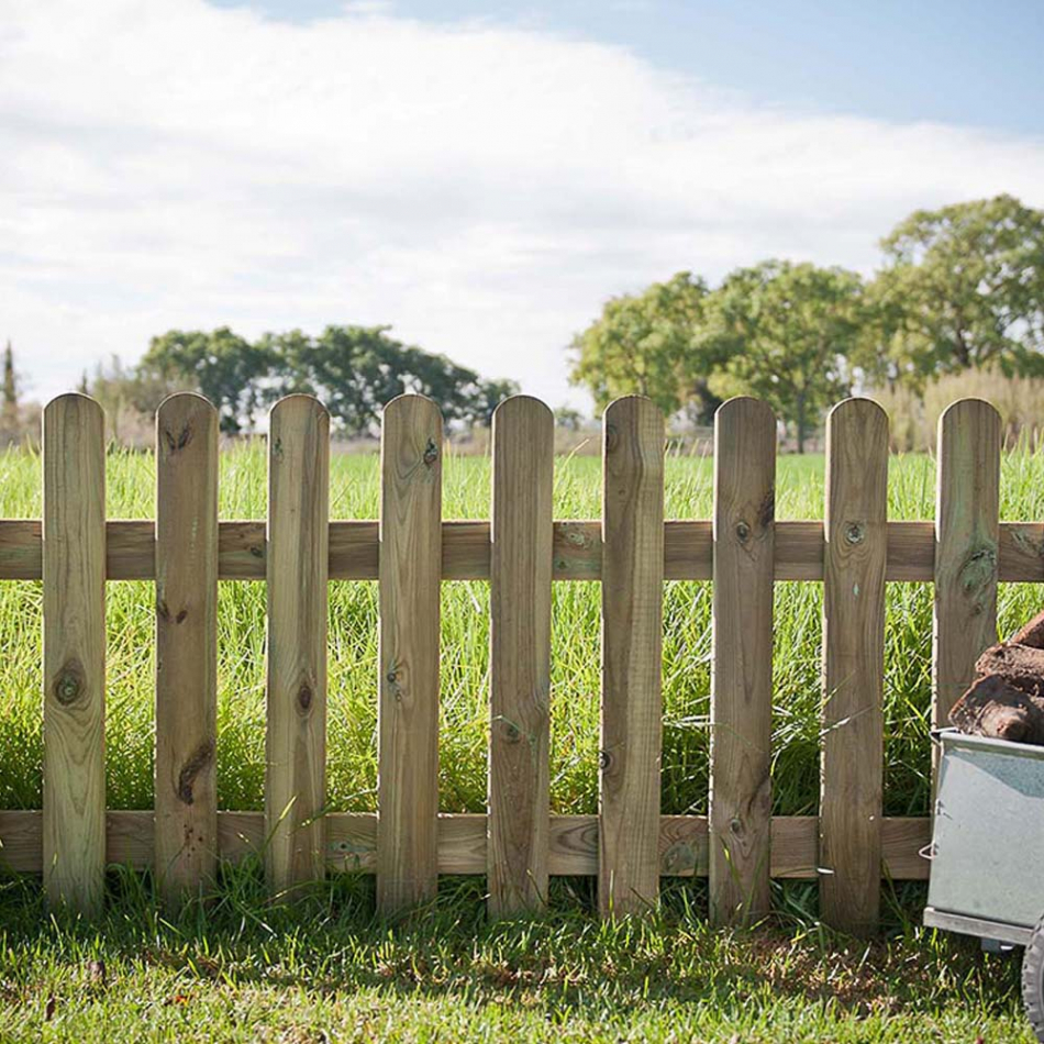 Valla clásica de madera con un ancho de 180cm, altura 80cm, ancho de tabla 9cm, grosor de tabla 1,6cm y separación de tabla de 9cm. con protección autoclave nivel 3 faura