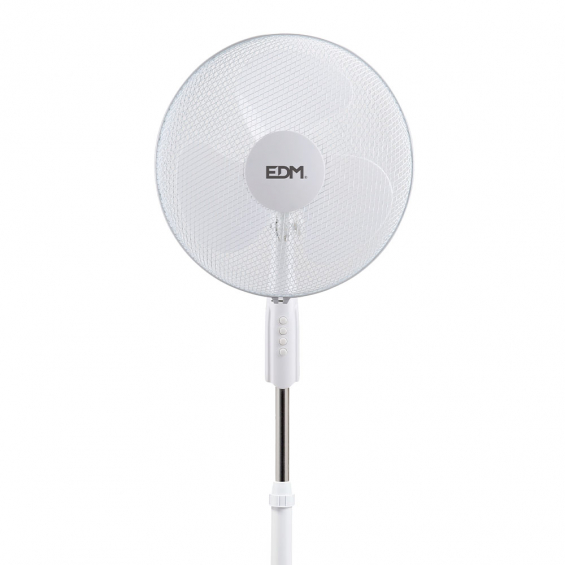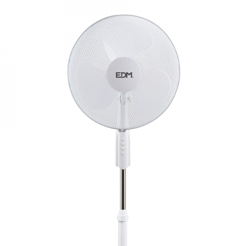 Ventilador de pie. color blanco. potencia: 50 w aspas: ø40 cm altura regulable 110-130cm 3 velocidades. rejilla de seguridad. cabezal y angulo de inclinacion ajustable: fijo/oscilante. caudal de aire 2082m³/h 220-240v 50hz 3 palas