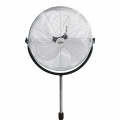 Ventilador de pie industrial, con base circular. cromado/negro potencia: 120w aspas: ø50cm altura regulable 118-148cm. 3 velocidades. cabezal ajustable. caudal de aire 6660m³/h 220-240v 50hz 3 palas base de plastico