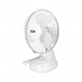 Ventilador de sobremesa. color blanco. potencia: 25 w aspas: ø23 27x24x36cm 2 velocidades. cabezal ajustable/oscilante. caudal de aire 770,4m³/h 220-240v 50hz 3 aspas
